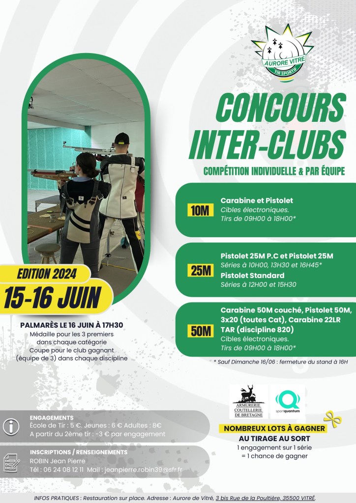 La section Tir Sportif de l’Aurore de Vitré organisera les 15 et 16 juin prochain l’édition 2024 de son concours inter-clubs.